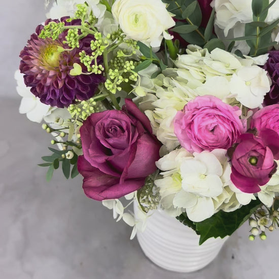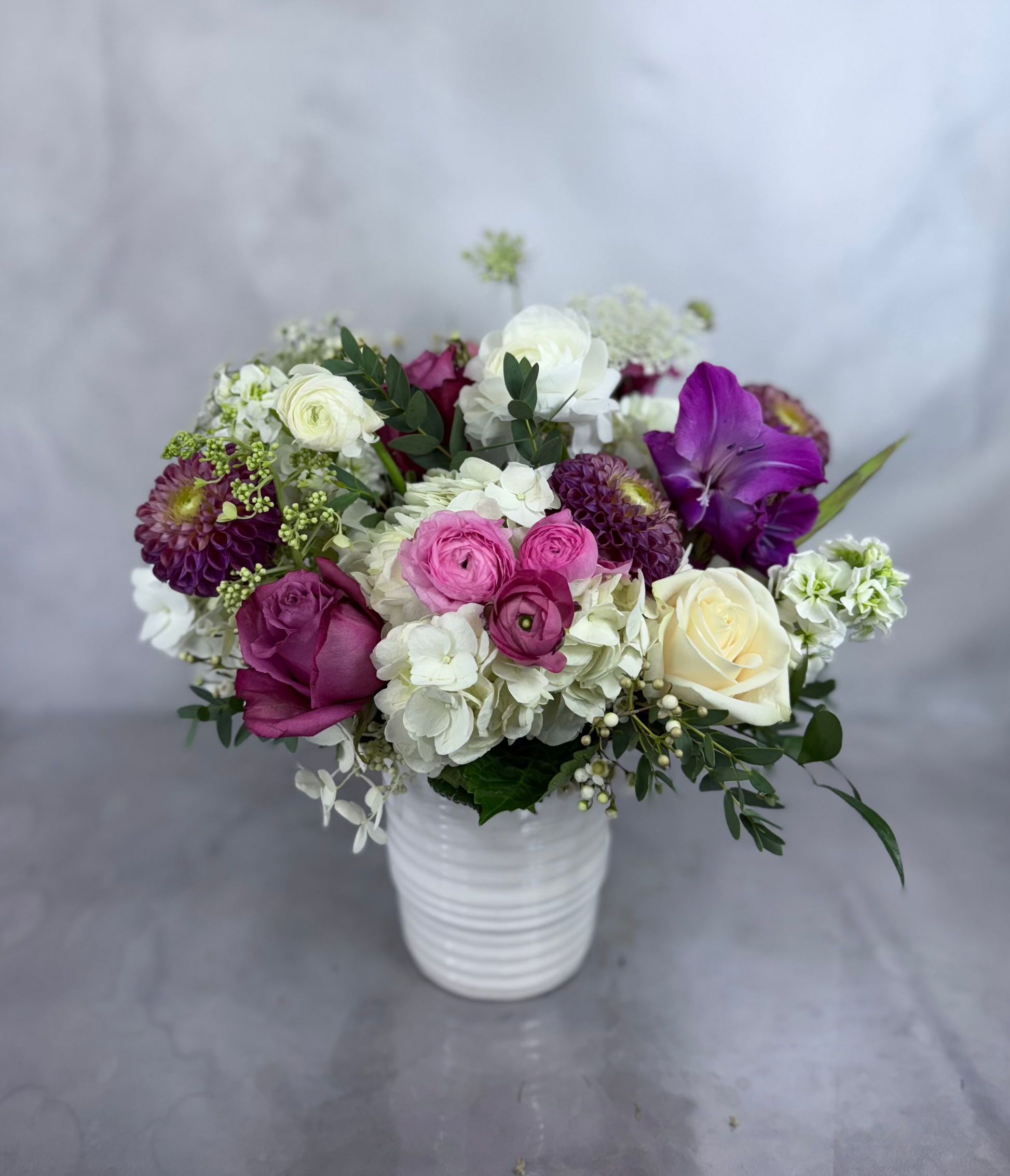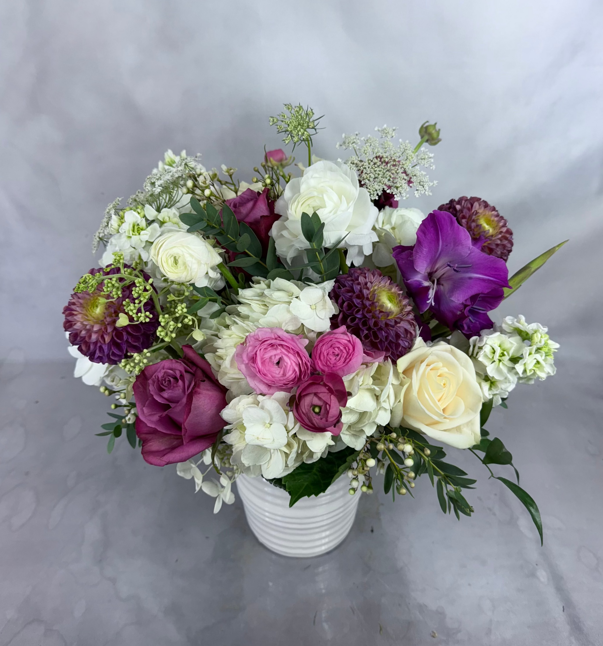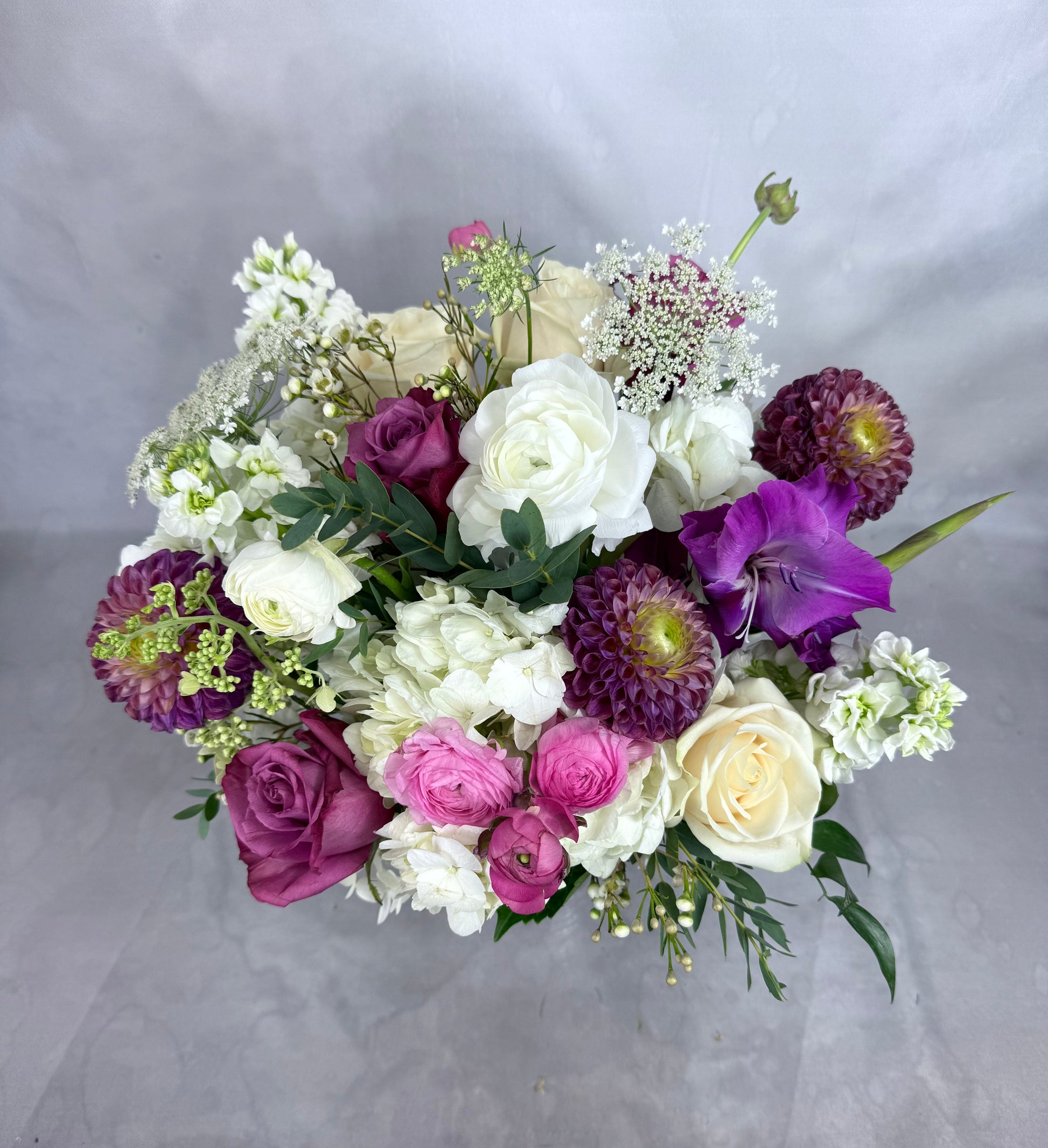 The harmony of cool-toned flowers is always sophisticated, making it a special floral gift meant exclusively for her refined taste