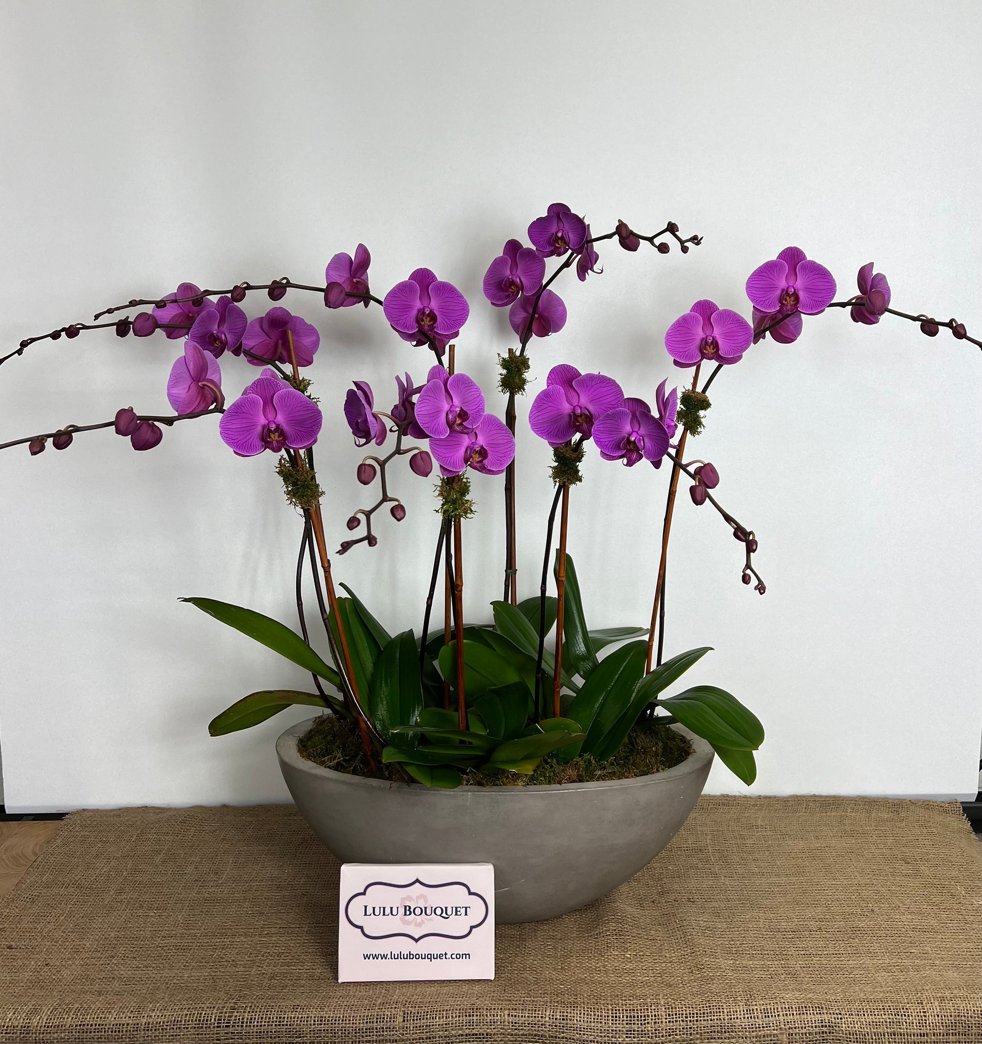 This orchid arrangement with vibrant colors expresses a splendid yet elegant beauty harmoniously brought together by 4-7 stem arrangements.