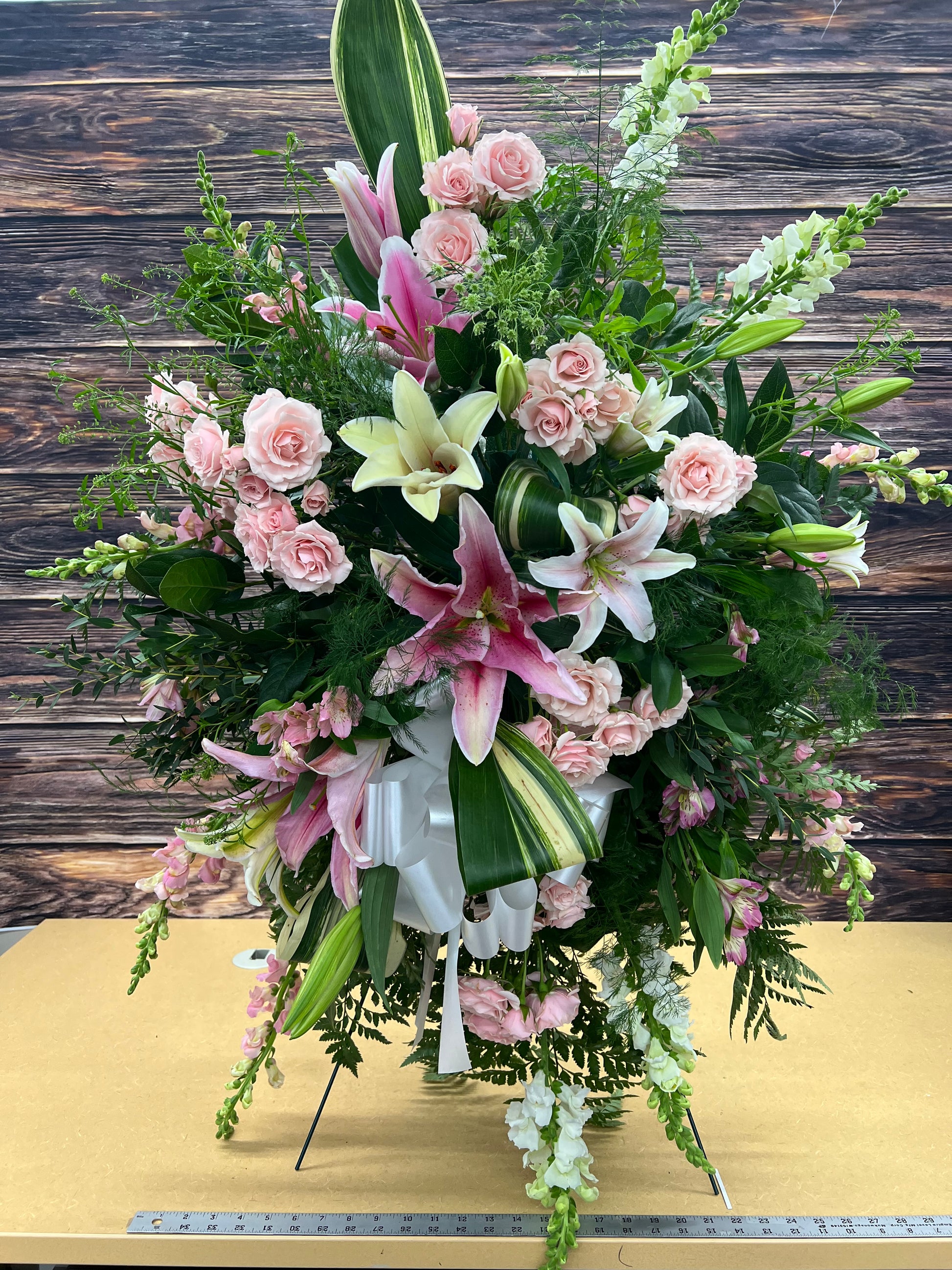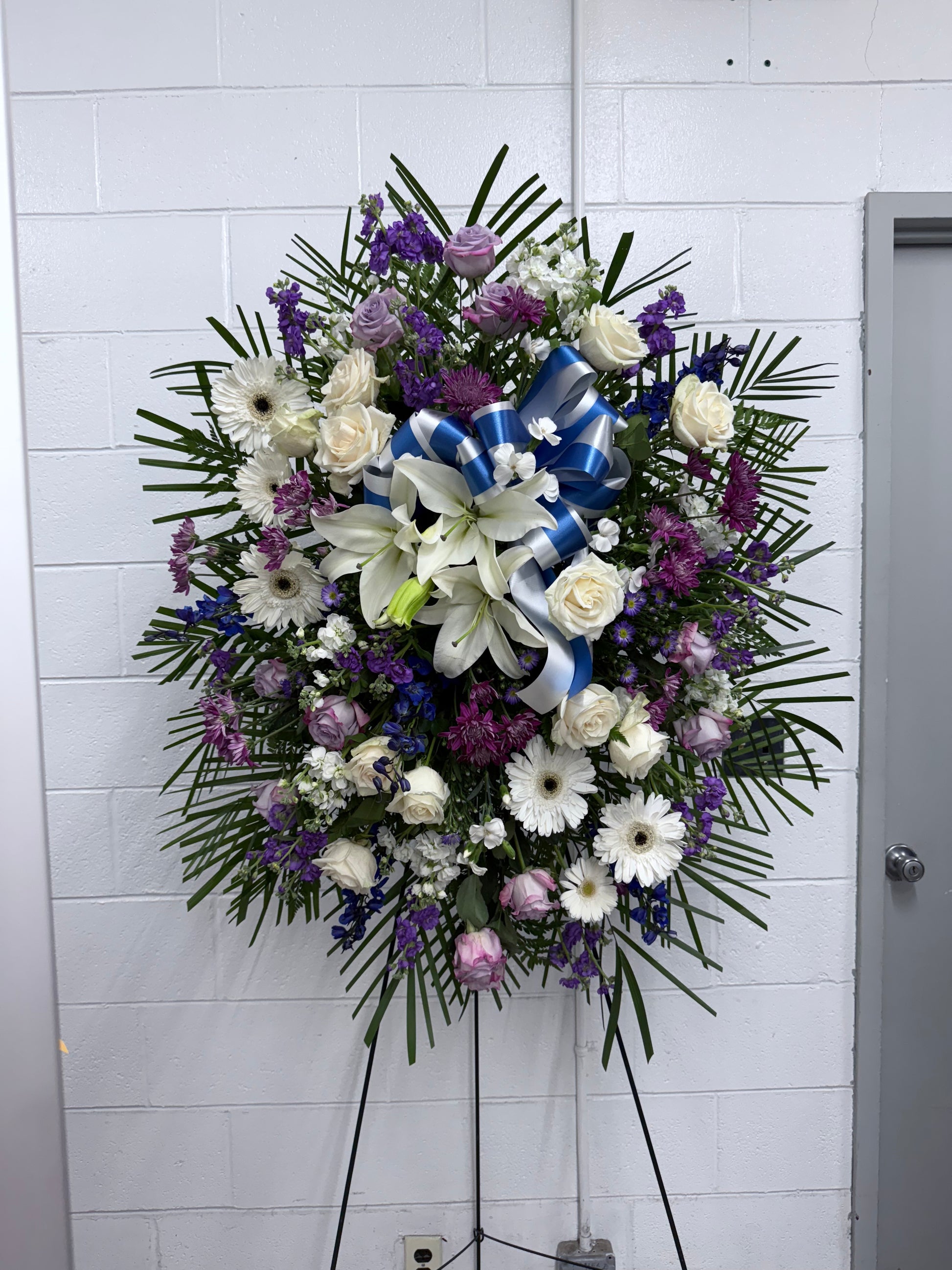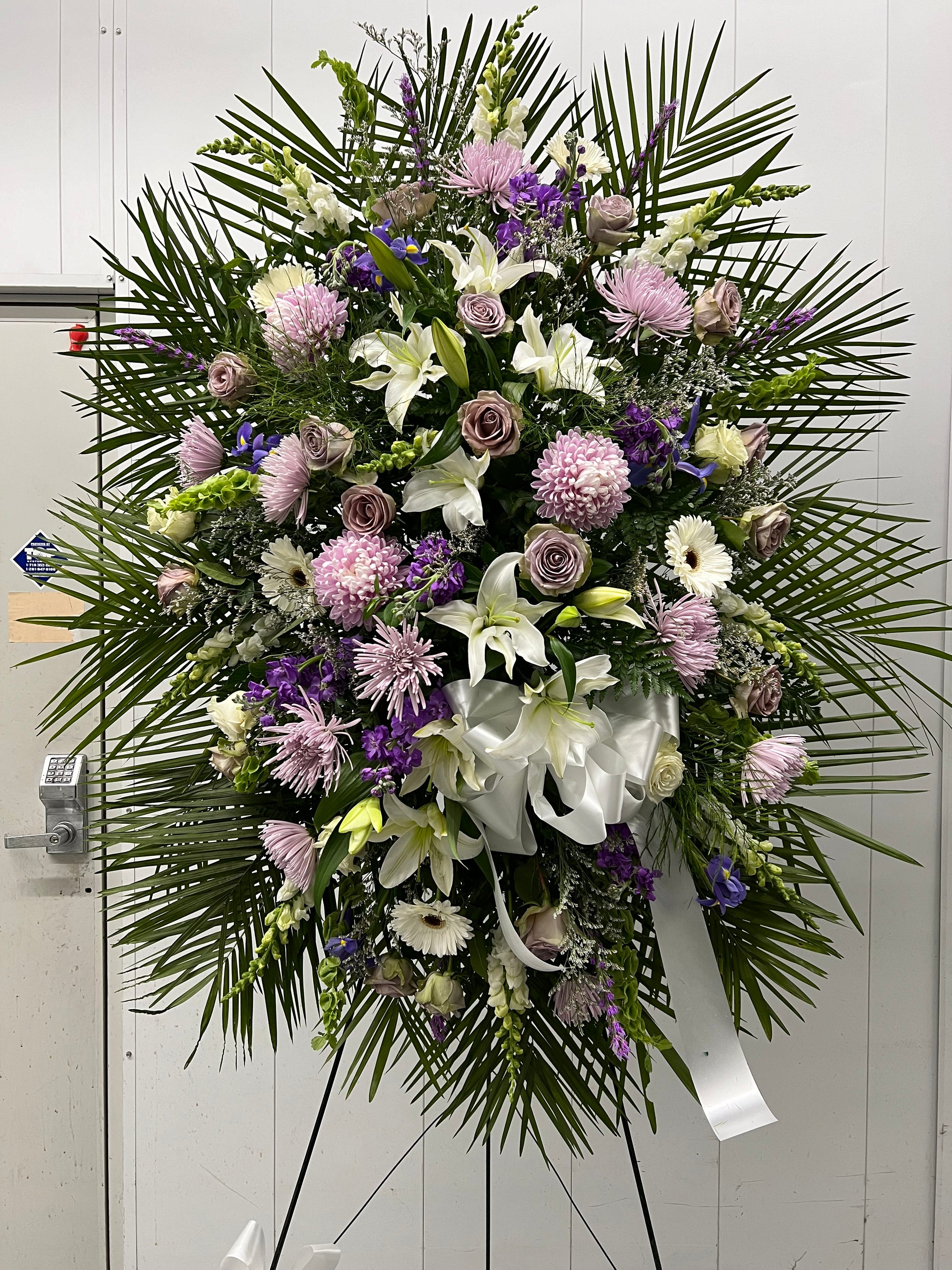 This is a traditional standing spray for a funeral, and is perfect for expressing your condolences