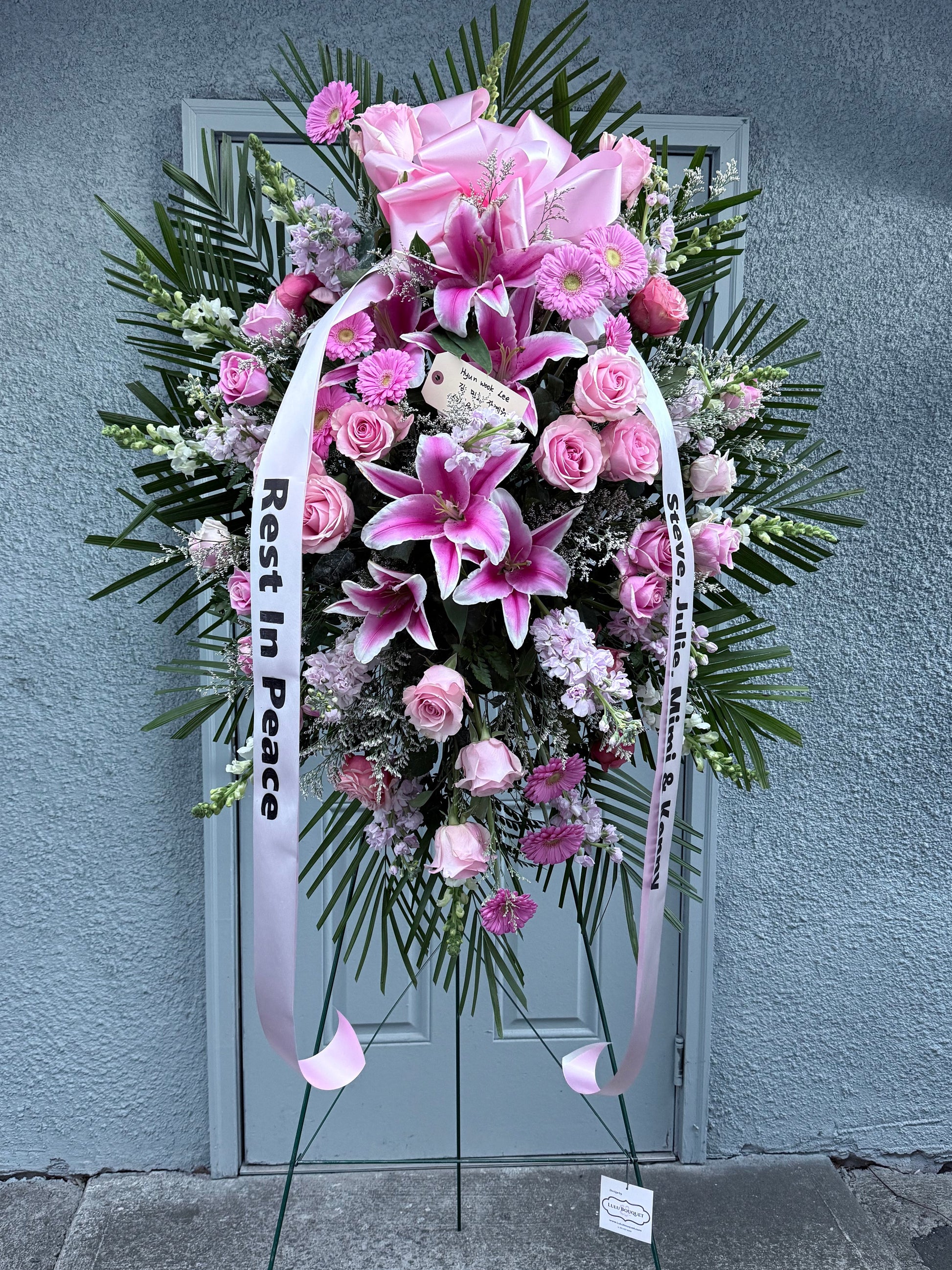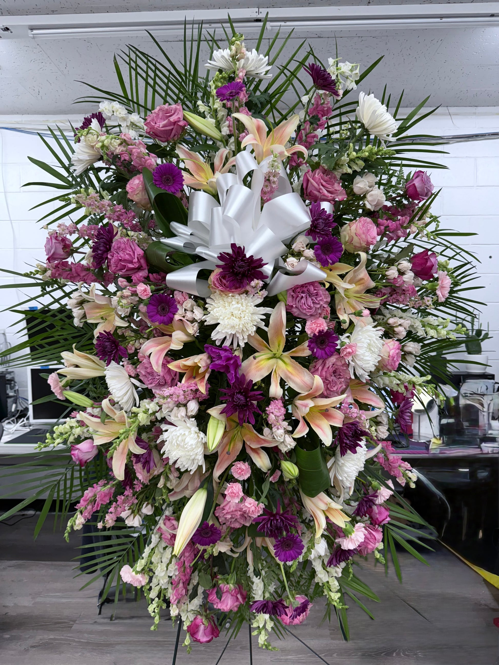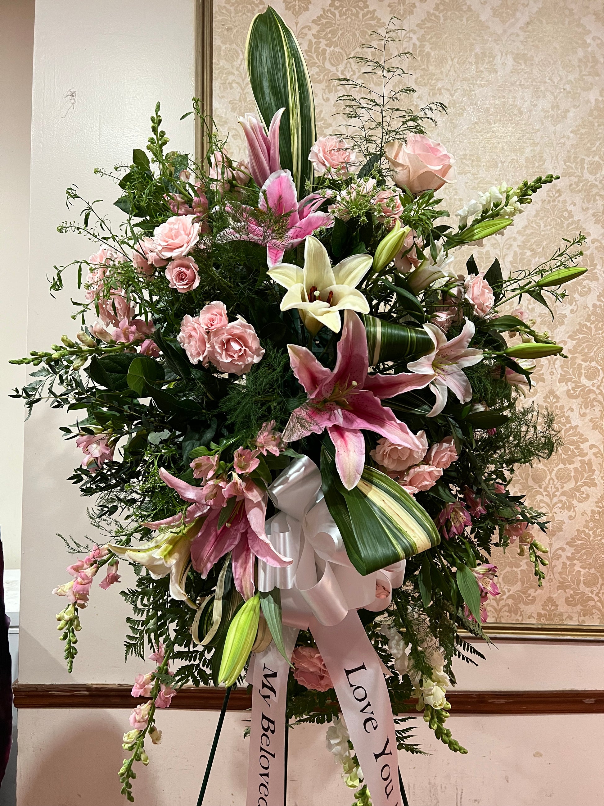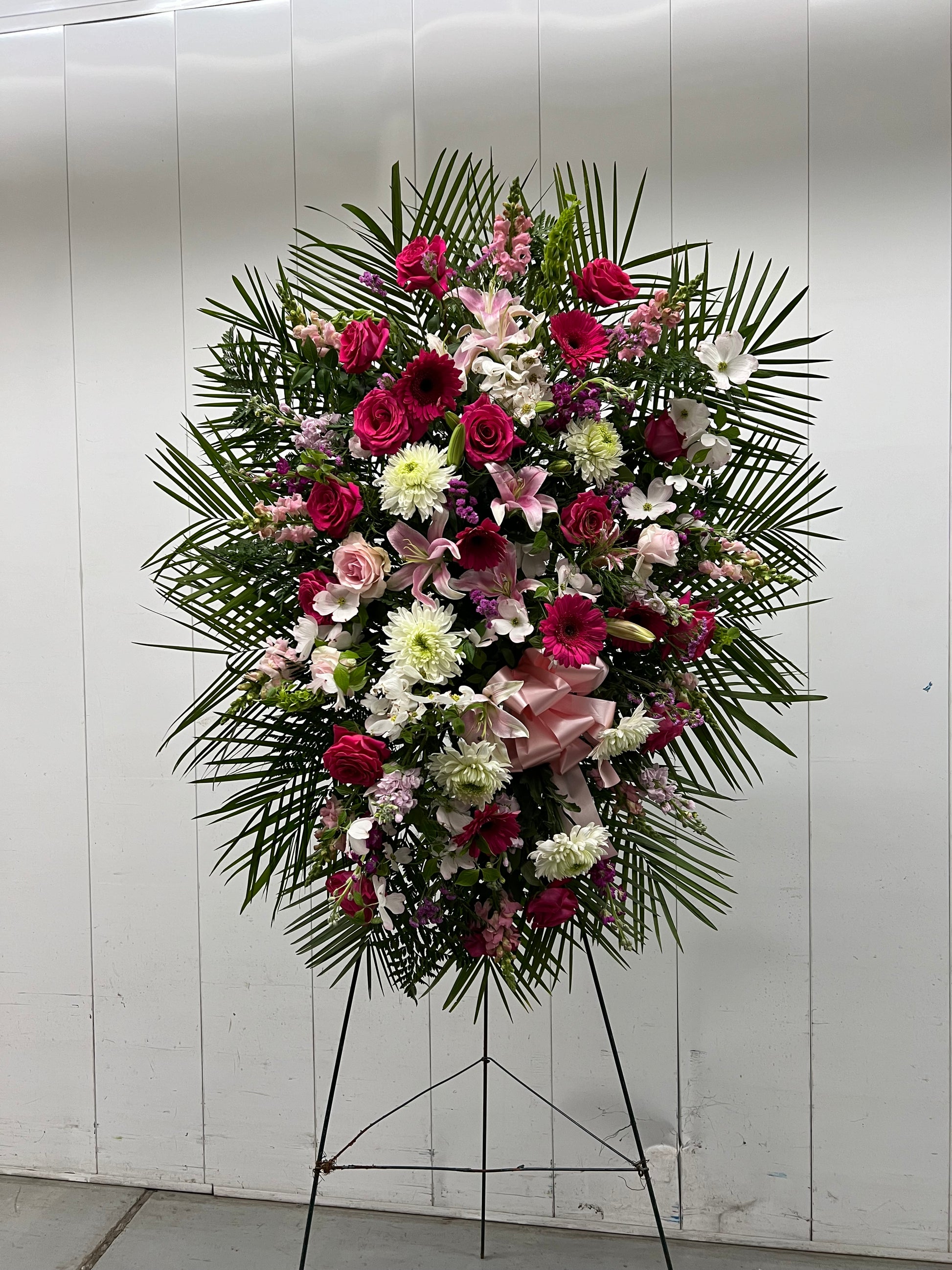 This is a traditional standing spray for a funeral, and is perfect for expressing your condolences